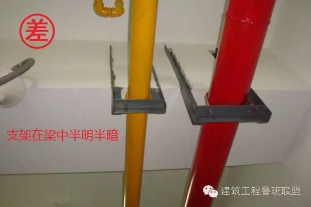 关键工序:墙面管道支架底座应采用钢板底座。