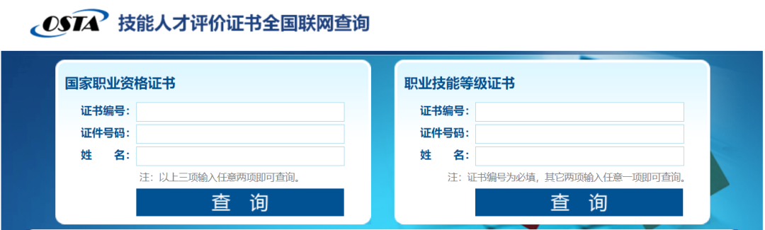 查询资格证书的网址:国家职业资格证书全国联网查询(zscx.osta.org.cn或 jndj.osta.org.cn)
