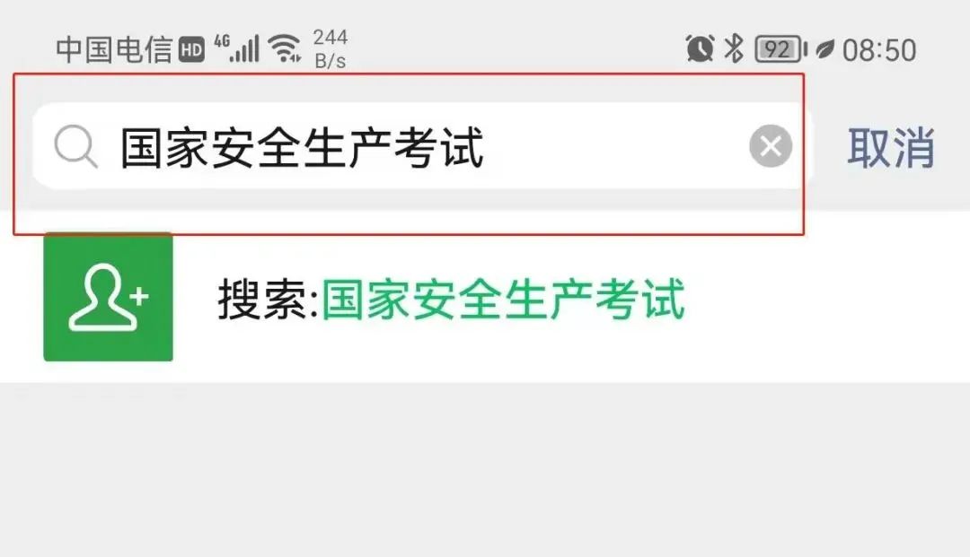 3、进入下一界面,输入“国家安全生产考试”,并“搜索”;