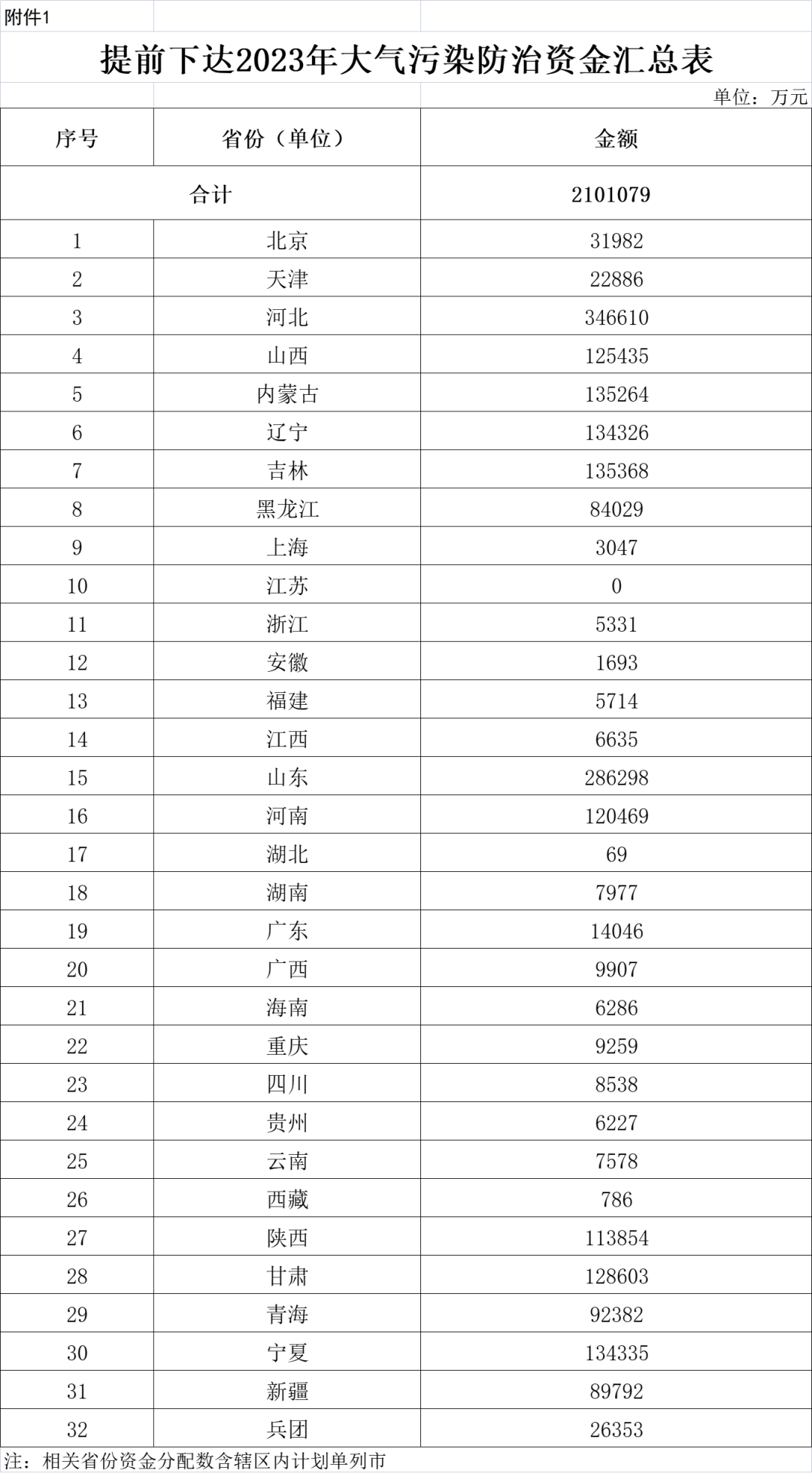 附件:1.提前下达2023年大气污染防治资金汇总表