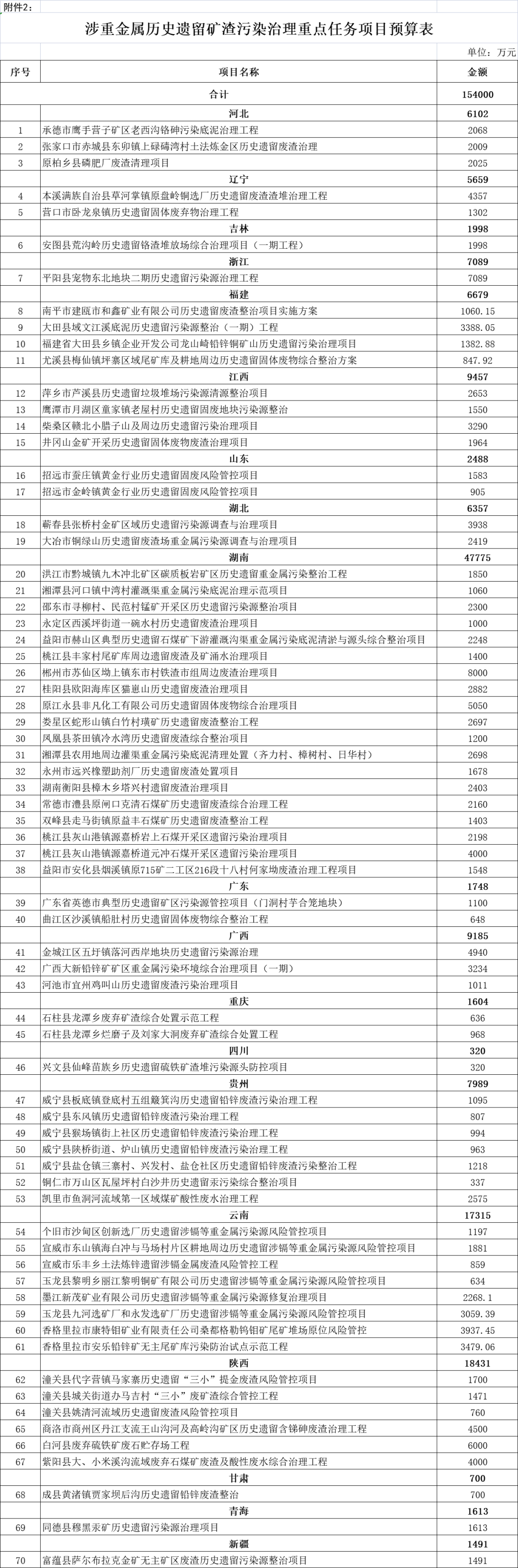 2.涉重金属历史遗留矿渣污染治理重点任务项目预算表