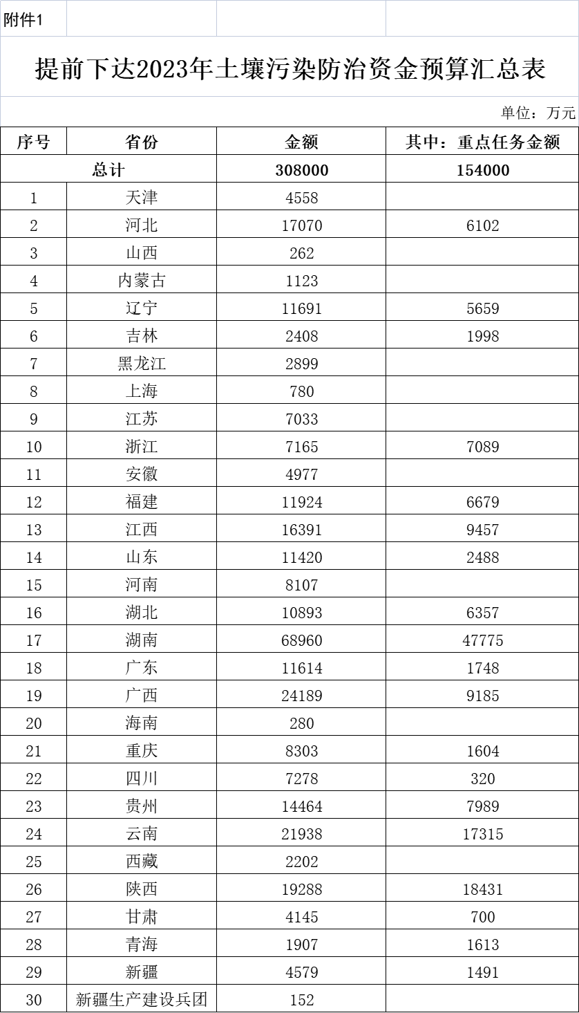 附件:1.提前下达2023年土壤污染防治资金预算汇总表