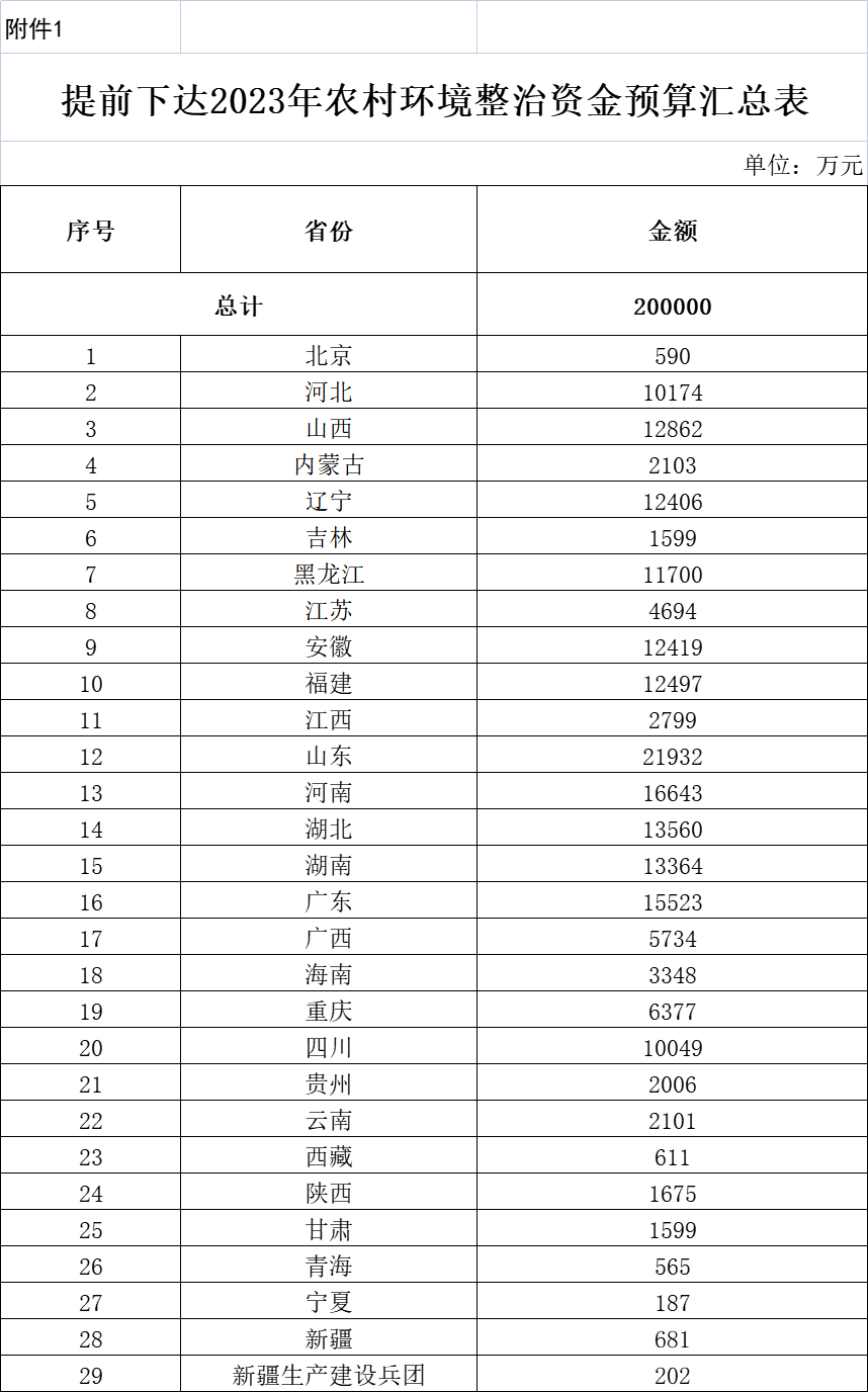 附件:1.提前下达2023年农村环境整治资金预算汇总表