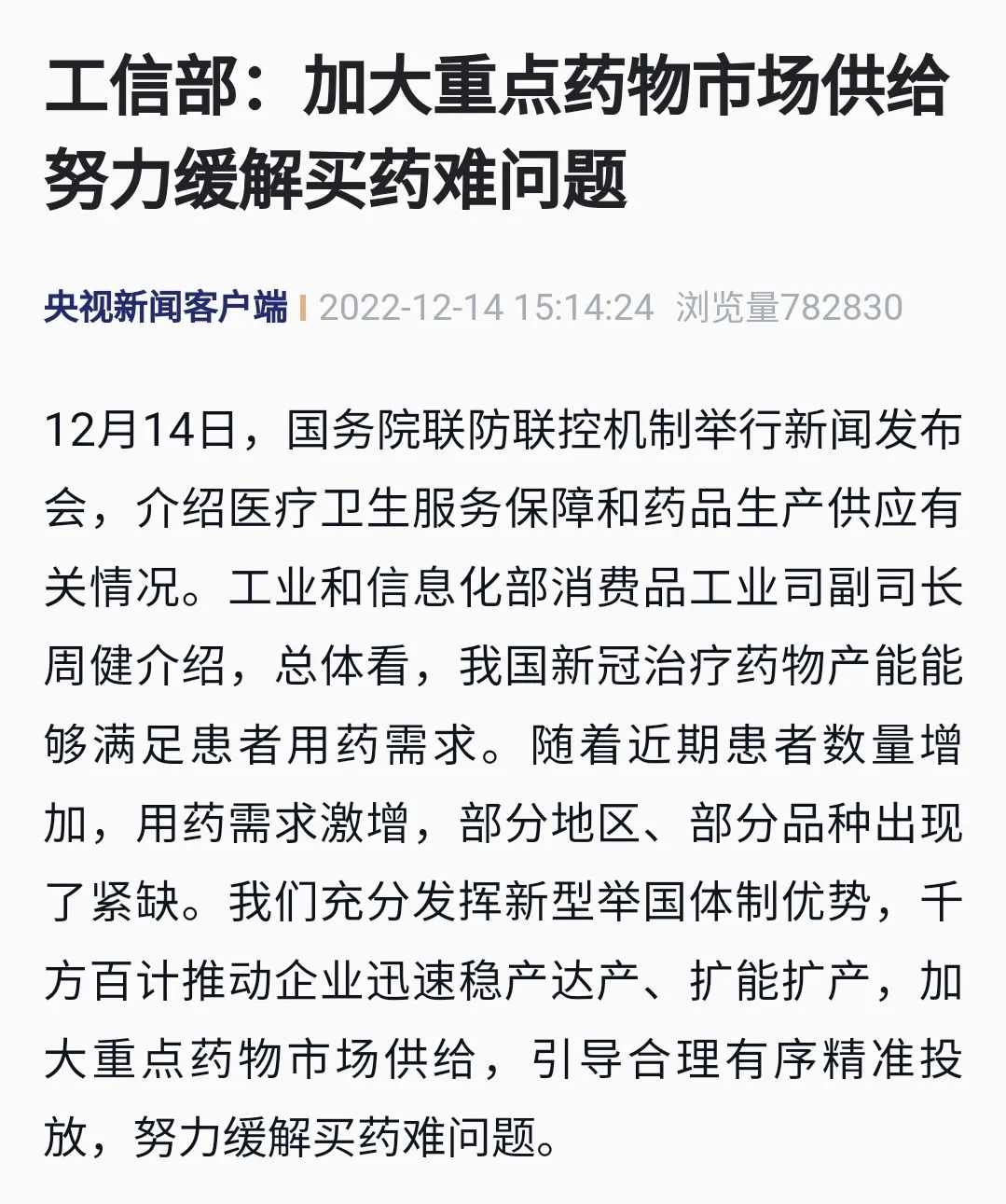 ,中国的医药企业之多、产量之高、产能之强均位居世界前列,几万人、几十万人乃至几百万人的需求都不是问题。