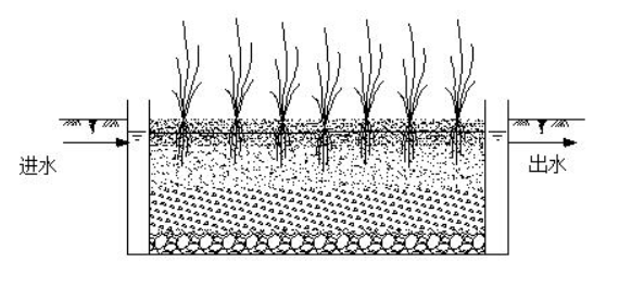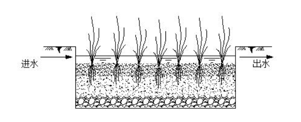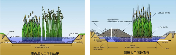 人工湿地类型按照进出水布水的方式的不同, 一般将人工湿地分为表面流人工湿地和潜流人工湿地。