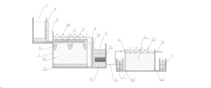 垂直潜流人工湿地系统的水在填料床 间基本呈从上到下的垂直流动方式,水流流过填料后均匀分布在出水端底部,而 后排被出系统。对 COD、TN 的去除率比水平人工湿地要高,而且抗负荷冲击 能力强,投资成本少、运行费也用低。但是相对于水平潜流人工湿地,垂直潜流 人工湿地去除有机物的能力不好,而且垂直潜流人工湿地设备要求高,运行流程 复杂。总的来说,潜流人工湿地受气候影响比较小,建造的成本较高,基质也很 容易堵塞,从而造成表面上水流停滞,对系统的长期运行并不利。