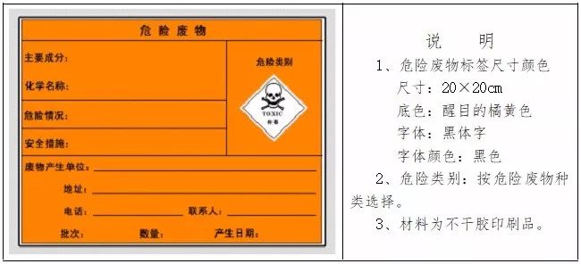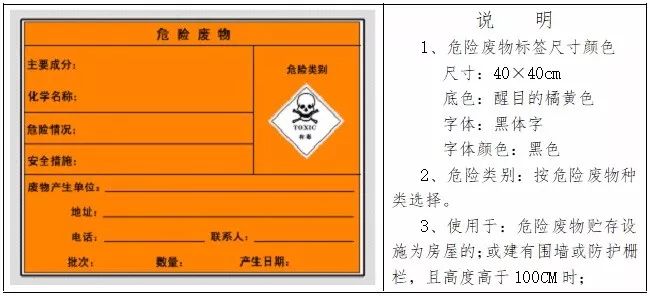 ▲粘贴于危险废物储存容器上的危险废物标签标签填写注意事项:危险情况和安全措施必须分别遵照《危险废物贮存污染控制标准》危险用语和安全用语填写。