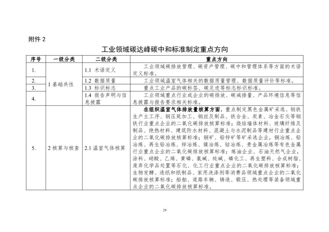 为深入贯彻落实党中央、国务院关于碳达峰碳中和决策部署,充分发挥标准在推进工业领域碳达峰碳中和工作的引领和规范作用,2023年5月22日,工业和信息化部科技司公开征求对《工业领域碳达峰碳中和标准体系建设指南(2023版)》(征求意见稿)的意见,提出工业领域碳达峰碳中和标准体系框架,规划了相关标准的研制方向,注重与现有工业节能与综合利用标准体系、绿色制造标准体系的有效衔接。希望通过加快相关标准制定、持续完善标准体系,推进工业领域向低碳、零碳发展模式转变。提出到2025年,工业领域碳达峰碳中和标准体系基本建立。针对低碳技术发展现状、未来发展趋势以及工业领域行业发展需求,制定200项以上碳达峰急需标准。重点制定基础通用、核算与核查、低碳技术与装备等领域标准,为工业领域开展碳评估、降低碳排放等提供技术支撑。加快研制碳排放管理与评价类标准,推动工业领域深度减碳,引导相关产业低碳高质量发展。