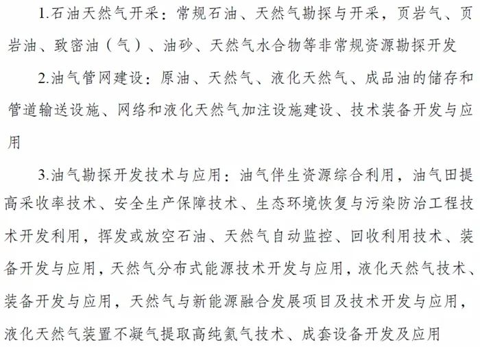 石油天然气鼓励类整合为3大类,相比于目录(2019本),新版本增添了天然气与新能源融合发展项目及技术开发与应用,波化天然气装置不凝气提取高纯氦气技术、成套设备开发及应用的内容。