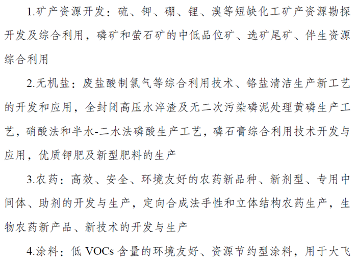 《产业结构调整指导目录(2023年本,征求意见稿)》,共有条目1002 条,其中鼓励类348 条、限制类231 条、淘汰类423 条。与上一版相比,总条目减少476条,鼓励类减少473条、限制类增加16条、淘汰类减少19条。鼓励类石化化工产业鼓励类条目中,新版按照矿产资源开发、无机盐、农药、涂料、树脂、橡胶、新材料、硅材料、氟材料、轮胎、生物材料、低碳环保技术等12个方面进行了整合,更具体系化和实用性。