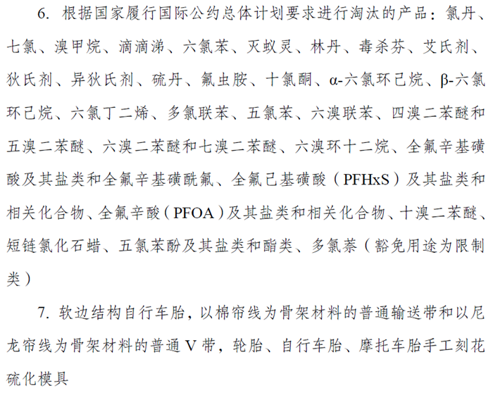 石化化工行业淘汰类产品有7大类。新增了高毒农药产品种类和履行国际公约总体计划要求进行淘汰的产品范围。