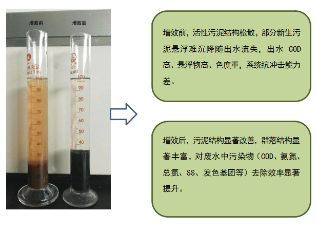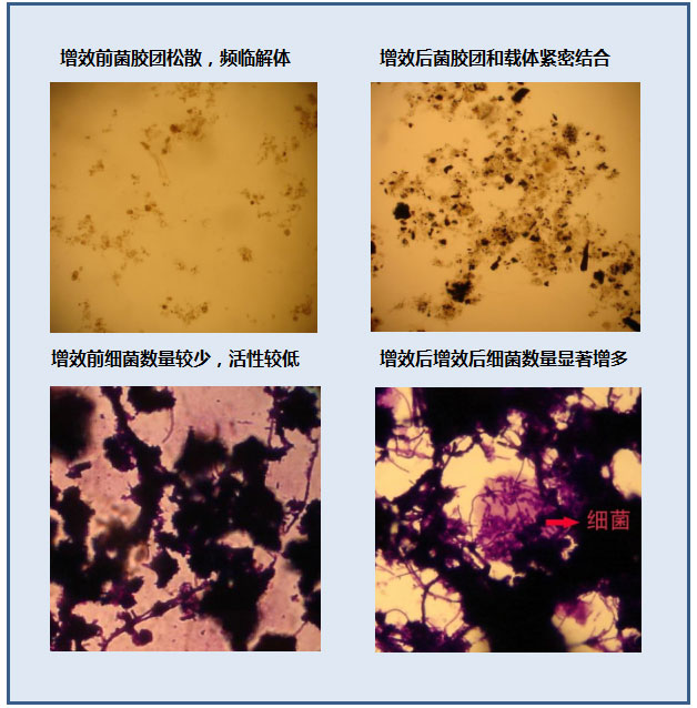 微生物增效剂是针对难降解工业废水Biochemistry处理系统增效而设计的“菌酶”复合体系,集合生物酶祛、功能微生物外源补充、微生物固定化等功能于一体,具有改变Biochemistry系统微生物的生存环境、大幅增加Biochemistry系统功能微生物的种群和数量、大幅增加废水中难降解污染物的传质速度和降解速率的成效,从而达到增加废水Biochemistry系统抗冲击能力,增加废水Biochemistry系统对难降解污染物的减少效率的目的。