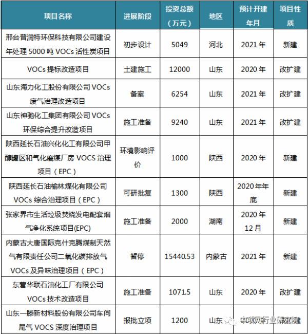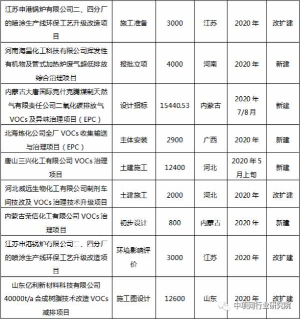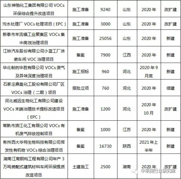 2020年有机废气处理项目主要分布在山东、河北和内蒙等地区