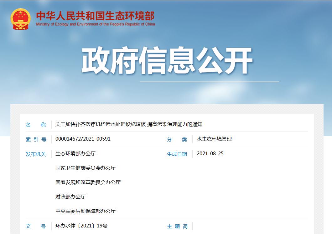 关于加快补齐医疗机构污水处理设施短板 提高污染治理能力的通知