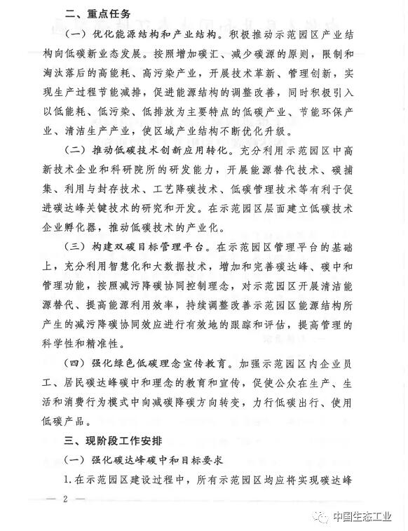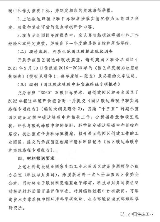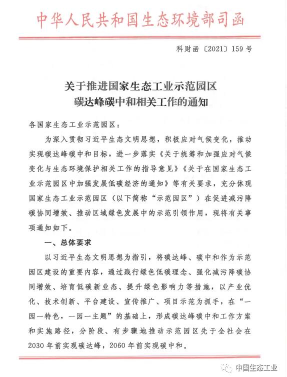 日前,生态环境部发布《关于推进国家生态工业示范园区碳达峰碳中和相关工作的通知》。详情如下:
