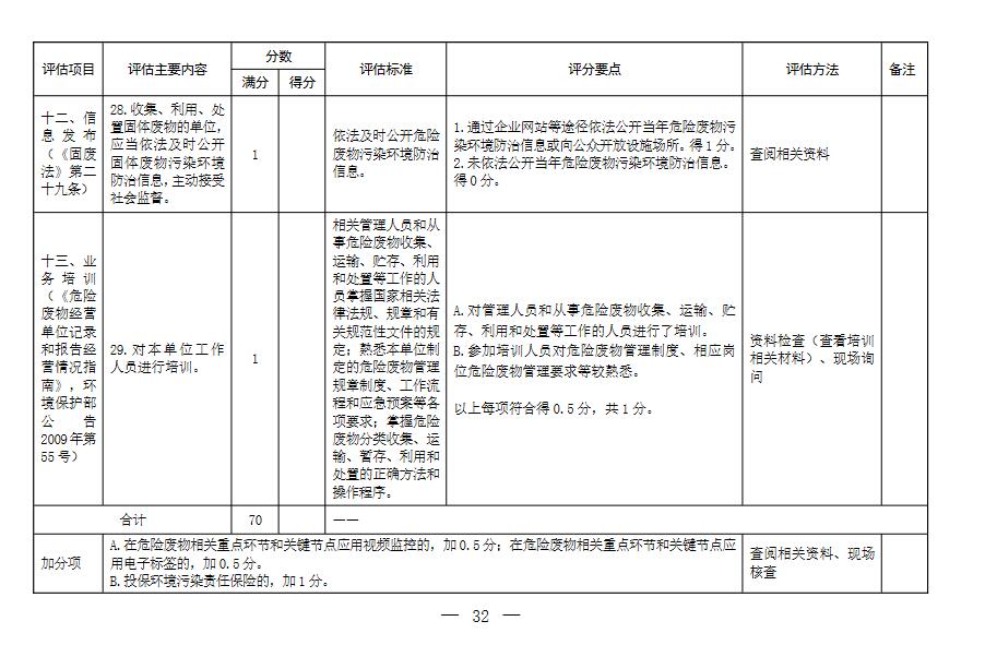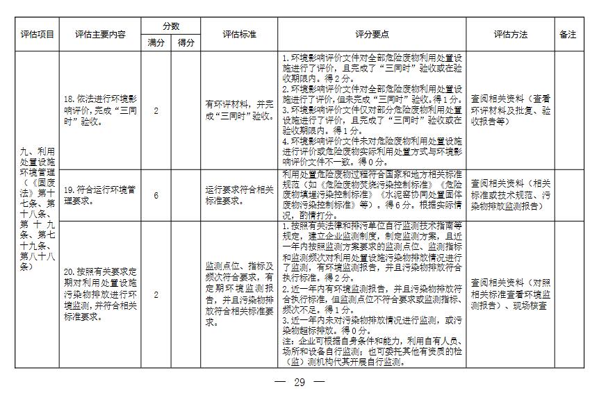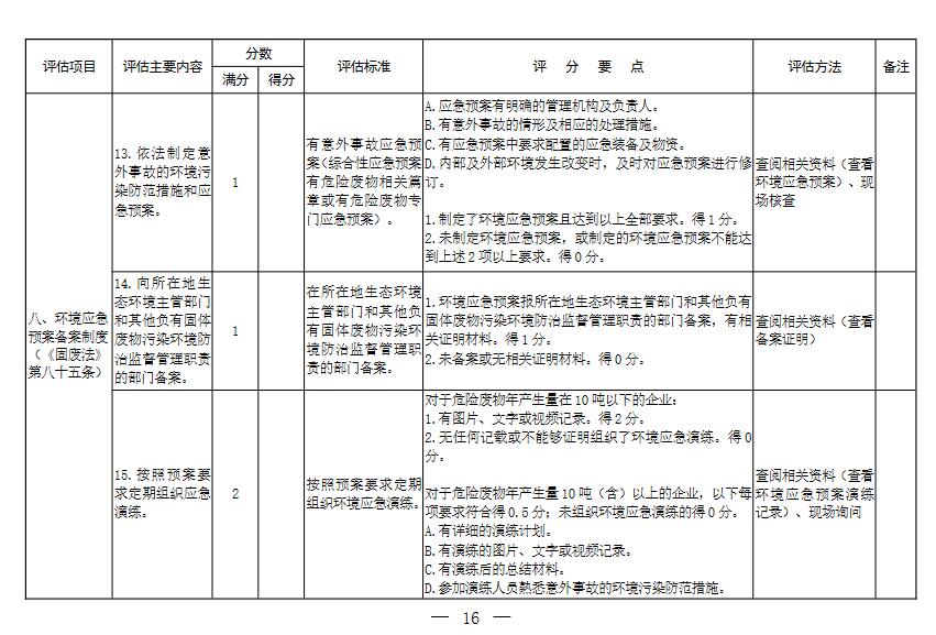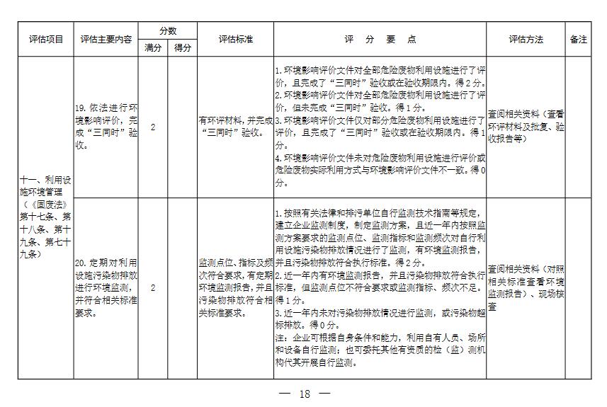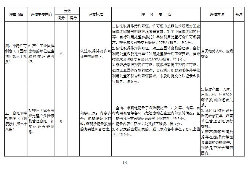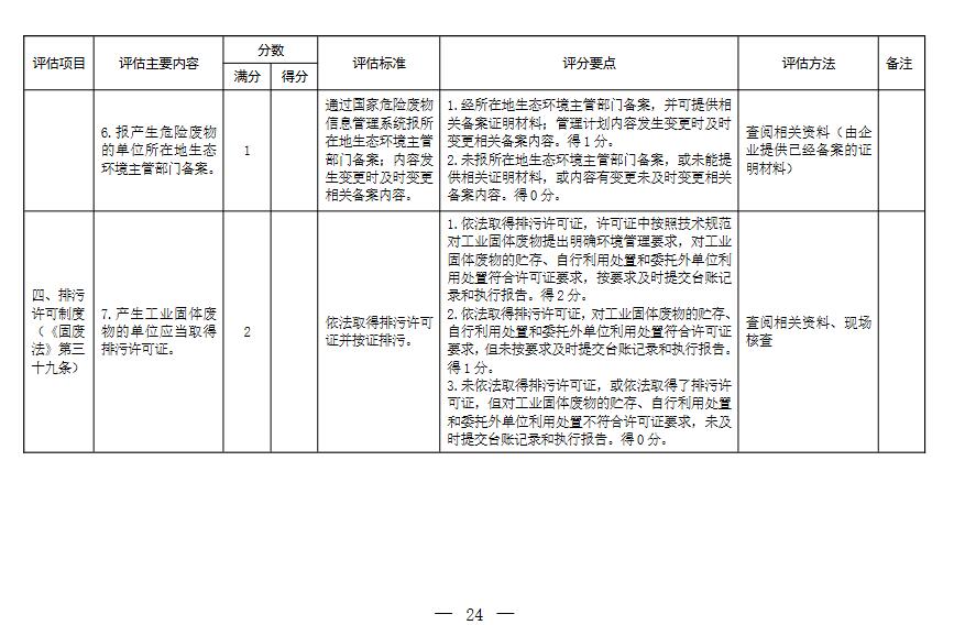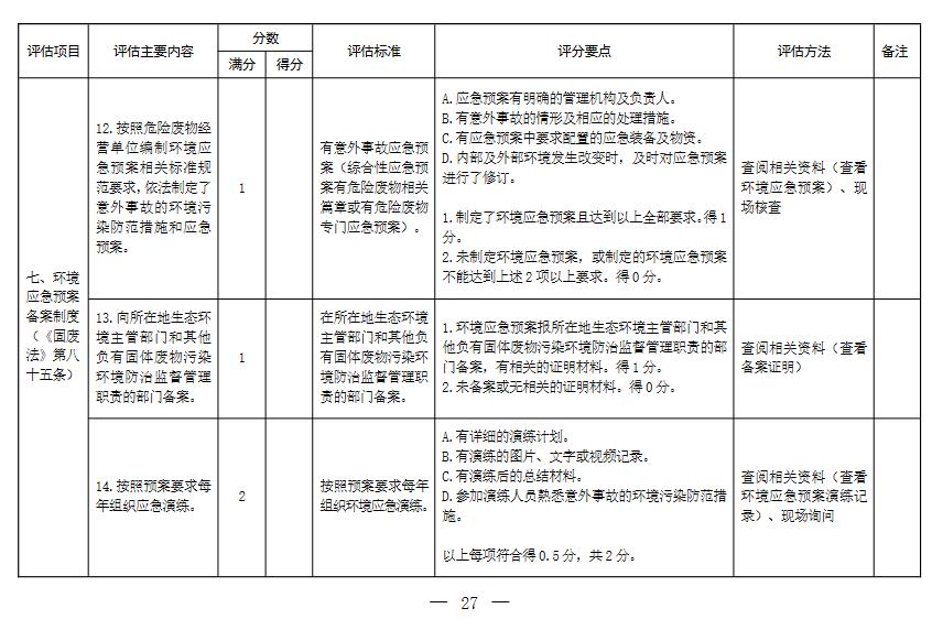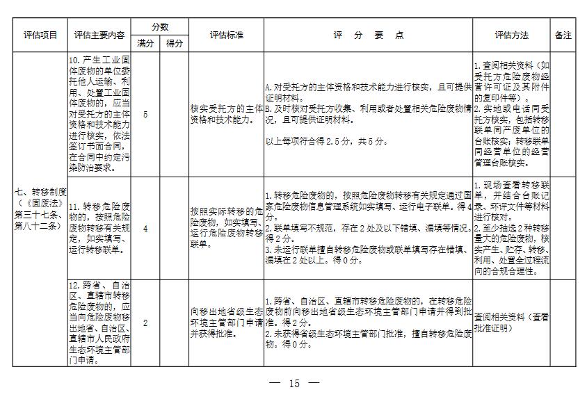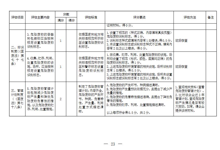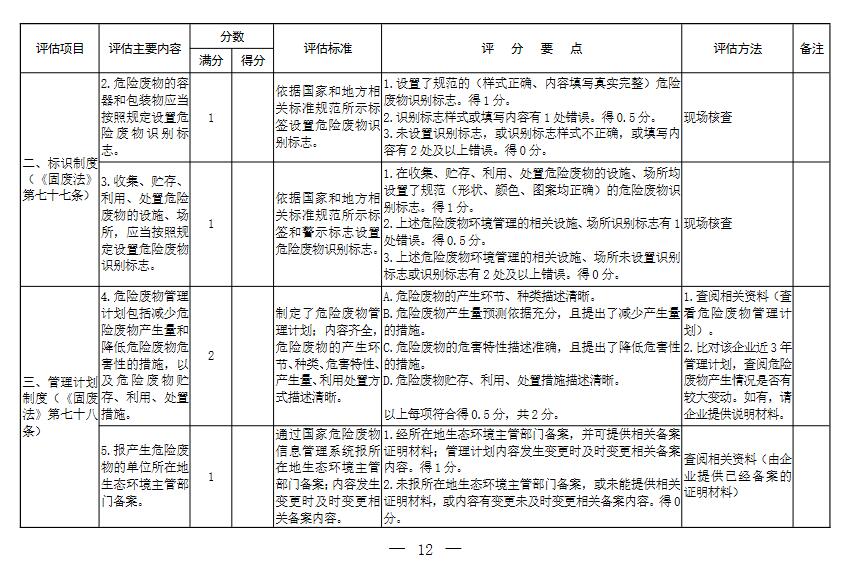 (三)评估安排。各省级生态环境主管部门应于每年1月31日前按照《评估指标》表1进行自评打分,总结上一年度危险废物规范化环境管理评估情况(要求见附件3),制定本年度评估工作方案,并将上述3项材料报送生态环境部,抄送生态环境部固体废物与化学品管理技术中心。