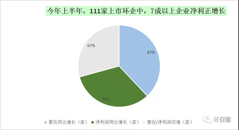 图二:今年上半年,111家上市环企中,70%以上企业净利润正增长▼