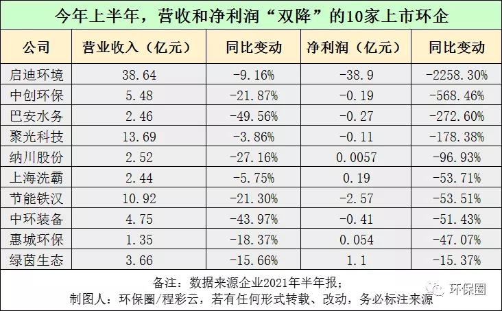 图三:今年上半年,营收和净利润“双降”的10家上市环企▼