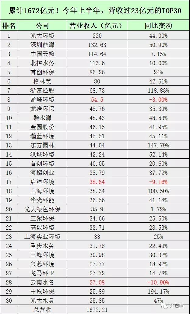 那么今年上半年呢?环保企业是继续一蹶不振,业绩持续低迷?还是东山再起,打了漂亮翻身仗?