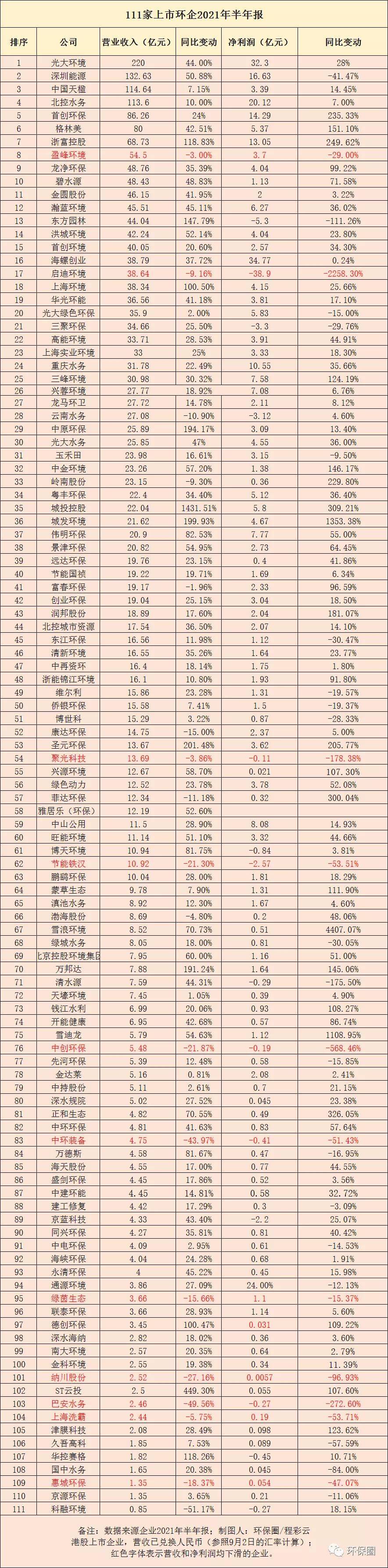 进入9月,各家上市环企2021年中报披露已进入尾声期。