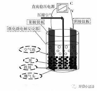 微电解法原理同样比较简单,是利用金属腐蚀原理,形成原电池对废水进行处理的工艺。该法使用废铁屑为原料,无需消耗电力资源,具有“以废治废” 的意义。具体来讲,微电解法的内电解柱内的往往使用废铁屑和活性炭等材料作为填充物,通过化学反应产生有较强还原性的Fe2+离子,能够将废水中某些具有氧化性质的成分还原;另外可以利用Fe(OH)2絮凝性进行水处理;活性C具有吸附作用,可吸附有机物及微生物;因此,微电解法就是通过铁-碳构成的原电池产生微弱电流,对微生物的生长和代谢具有刺激作用。内电解水处理法的最大优点在于不消耗能源,而且该方法能够将污水中的多种污染成分和色度去除,同时能提高难降解物的可生化性。微电解水处理技术一般作为其他水处理技术的预处理法或者补充方法结合使用,从而提高废水的可处理性和可生化性。但与此同时,微电解水处理法也有缺点,最大的缺点是反应速度比较慢,反应器易阻塞,处理高浓度废水比较困难。