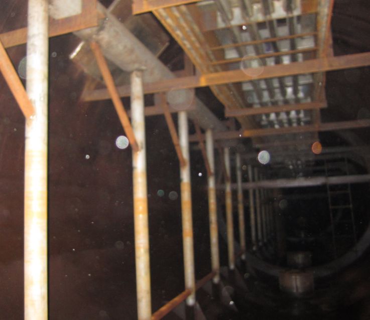 在除氧器内部装设有三个小的平台及三个扶梯,用于在现场水压试验完成后,装配除氧盘用,同时也可用于检修其它内部零部件。