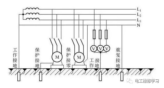 重复接地就是在中性点直接接地的系统中,在零干线的一处或多处用金属导线连接接地装置。