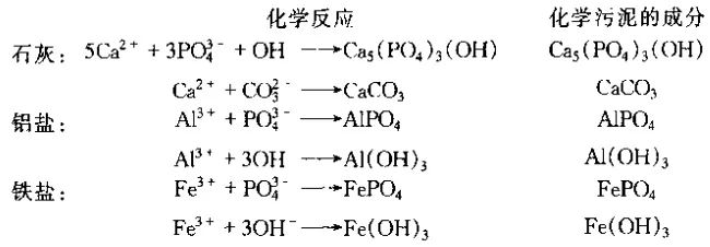 多点投加点是在沉砂池、生物反应池和固液分离设施等位置投加药剂,其可以降低投药总量,增加运行的灵活性。由于pH值的影响,不可采用石灰作混凝剂,在需要硝化的场合,要注意铁、铝对硝化菌的影响。3、化学除磷药剂铝盐有硫酸铝、铝酸钠和聚合铝等,其中硫酸铝较常用。铁盐有三氯化铁、氯化亚铁、硫酸铁和硫酸亚铁等,其中三氯化铁最常用。采用铝盐或铁盐除磷时,主要生成难溶性的磷酸铝或磷酸铁,其投加量与污水中总磷量成正比。可用于生物反应池的前置、后置和同步投加。采用亚铁盐需先氧化成铁盐后才能取得最大除磷效果,因此其一般不作为后置投加的混凝剂,在前置投加时,一般投加在曝气沉砂池中,以使亚铁盐迅速氧化成铁盐。采用石灰除磷时,生成Ca5(PO4)3OH沉淀,其溶解度与pH值有关,因而所需石灰量取决于污水的碱度,而不是含磷量石灰作混凝剂不能用于同步除磷,只能用于前置或后置除磷。石灰用于前置除磷后污水pH值较高,进生物处理系统前需调节pH值;石灰用于后置除磷时,处理后的出水必须调节pH值才能满足排放要求;石灰还可用于污泥厌氧释磷池或污泥处理过程中产生的富磷上清液的除磷。用石灰除磷,污泥量较铝盐或铁盐大很多,因而很少采用。加入少量阴离子、阳离子或阴阳离子聚合电解质,如聚丙烯酰胺(PAM),作为助凝剂,有利于分散的游离金属磷酸盐絮体混凝和沉淀。