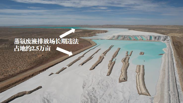 2023年11月22日,督察组现场督察使用无人机拍摄,清澜红树林省级自然保护区大量养殖塘取排水设施导致海滩被严重扰动侵蚀,沟壑密布,触目惊心(图源:中国环境)督查组下沉青海省则发现,青海发投碱业公司、中盐青海昆仑碱业公司蒸氨废液排放场长期违法占地约2.5万亩;昆仑碱业的蒸氨废液排放场西侧坝体2019年以来出现明显渗漏,对相邻的柴达木梭梭林国家级自然保护区构成威胁;青海五彩碱业公司蒸氨废液排放场违法占用裸地9599亩。