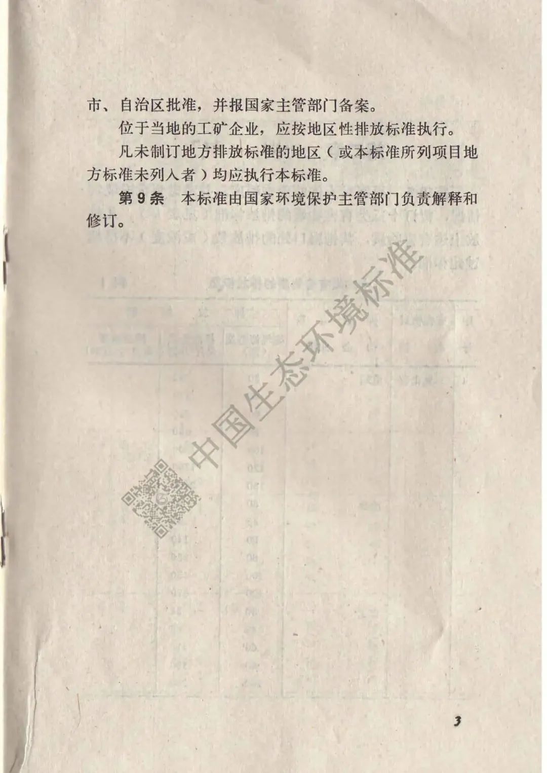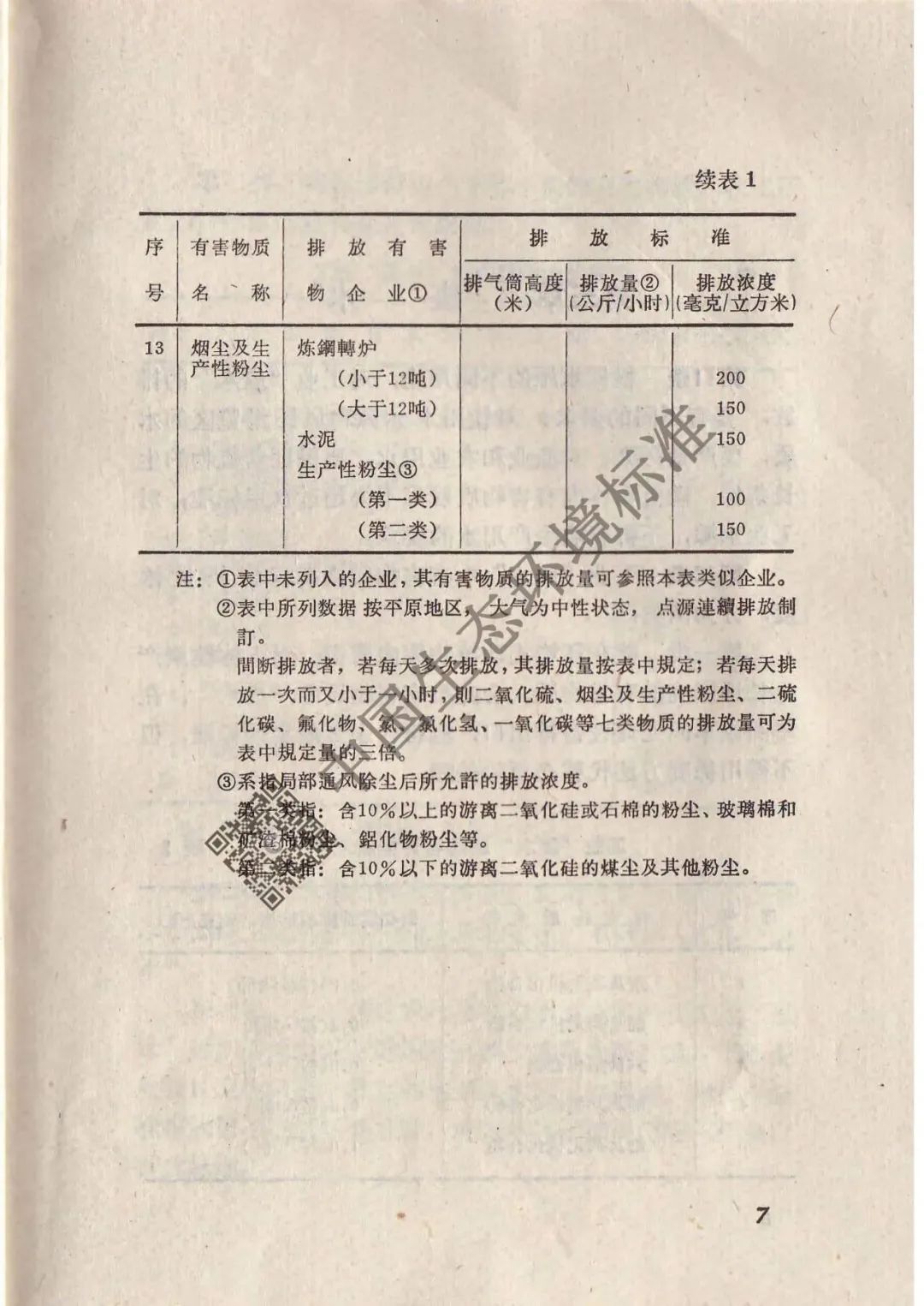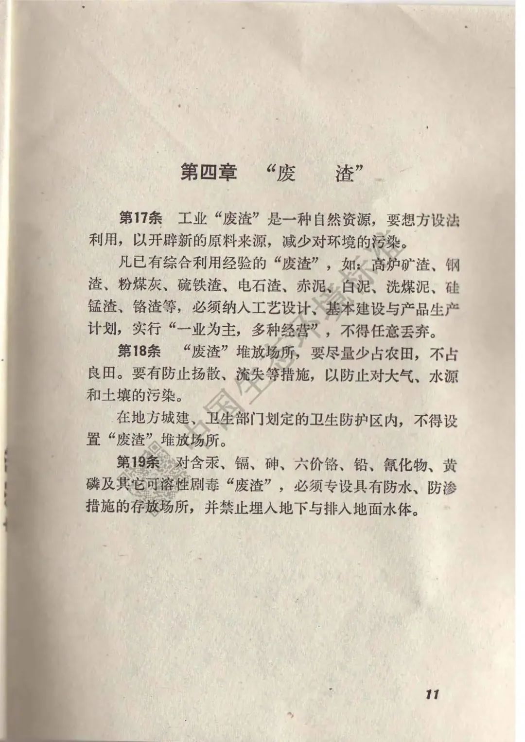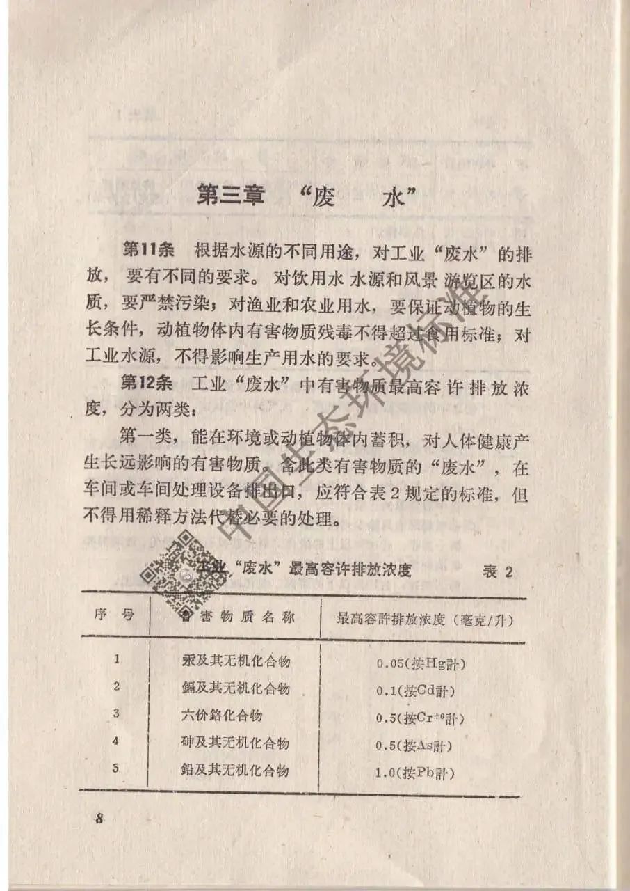 我国的环境标准化工作是与环境保护事业同步发展起来的。1973年8月召开的第一次全国环境保护工作会议为我国环境保护事业的发展奠定了基础。与此同时,我国的第一个环境标准《工业“三废”排放试行标准》也完成了编制工作,提交此次会议讨论通过。其后,由原国家建委、国家计委和卫生部联合发布。《工业“三废”排放试行标准》对我国环境保护事业的发展具有重要的历史意义,它为环境保护部门行使管理职能提供了依据,在“三同时”(在进行新建、改建和扩建工程时,其防止污染和其他公害的设施,必须与主体工程同时设计、同时施工、同时投产)把关、排污收费、环境影响评价、污染防治等工作中发挥了积极的作用。具体编制历程如下:1973年1月8日,在全国环境保护会议筹备领导小组办公室中,设立排放标准组,研究制订污染物排放标准。1973年1月31日,筹各办公室请清华大学钱伟长教授作访问美国等四国环境污染及环境标准管理的报告。1973年2月12日,成立“三废”排放标准编制小组。1973年6月,完成“三废”排放标准(征求意见稿),先后两次征求14个省、市、自治区和中央8个部委所属重点厂矿、科研、设计单位、大专院校的意见。并连同《放射防护规定》一同提交全国环境保护工作会议讨论。1973年8月5~20日,在北京召开第一次全国环境保护工作会议。会议通过了《工业“三废”排放试行标准》和《放射性防护规定》。国务院批转了《关于保护和改善环境的若干规定》,该《规定》指出:“对于目前还不能综合利用的‘三废’尽可能实行净化处理…使排出物不超过国家颁布的排放标准。” 1973年11月17日,国家计委、国家建委、卫生部联合发布我国第一个环境保护标准GBJ4一73《工业“三废”排放试行标准》,自1974年1月1日起试行。标准规定了19项水污染物排放标准和13项大气污染物排放标准及对废渣的管理要求,并提出“三同时”原则,规定各省、自治区、直辖市可根据本地具体情况制定地方排放标准。主要技术内容标准规定了废气中二氧化硫、二硫化碳、硫化氢、氟化物、氮氧化物、氯、氯化氢、一氧化碳、硫酸雾、铅、汞、铍化物、烟尘及生产性粉尘13种有害物质的排气筒高度、排放量、排放浓度指标,适用于电站、冶金、化工、轻工、工业及采暖锅炉、炼钢电炉、炼钢转炉、水泥等企业。标准对废水排放区分第一类有害物质和第二类有害物质规定了不同的排放控制要求。第一类有害物质,是指能在环境或动植物体内蓄积,对人体健康产生长远影响的有害物质,标准规定了废水中汞及其化合物、镉及其化合物、六价铬化合物、砷及其化合物、铅及其化合物 5 种第一类有害物质的最高容许排放浓度指标,并要求在车间或车间处理设备排出口满足指标要求。第二类有害物质是指其长远影响小于第一类的有害物质,标准规定了废水中pH值、悬浮物、生化需氧量、化学耗氧量、硫化物、挥发性酚、氰化物、有机磷、石油类、铜及其化合物、锌及其化合物、氟的无机化合物、硝基苯类、苯胺类14种第二类有害物质的最高容许排放浓度指标,并要求在工厂排出口满足指标要求。标准规定凡已有综合利用经验的“废渣”,必须列入综合利用项目;“废渣”堆放场所,要尽量少占农田,不占良田;要有防止扬散、流失措施,以防止对大气、水源和土壤的污染;含汞、镉、砷、六价铬、铅、氰化物、黄磷及其它可溶性剧毒“废渣”,必须有专设的具有防水、防渗措施的存放场所,并禁止埋入地下与排入地面水体。