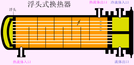 1.蛇管式换热器(1)沉浸式蛇管换热器:高压腐蚀性介质的冷却可以采用沉浸式蛇管换热器,稍作改变可以作为管式反应器或作反应延时器使用。(2)喷淋式换热器:多用作冷却器,一般用于烟气预热回收。这种设备常放置在室外空气流通处,冷却水在空气中汽化时可带走部分热量,以提高冷却效果。 2.套管式换热器:套管换热器结构简单,能承受高压,应用亦方便(可根据需要增减管段数目).特别是由于套管换热器同时具备传热系数大,传热推动力大及能够承受高压强的优点,在超高压生产过程(例如操作压力为3000大气压的高压聚乙烯生产过程)中所用的换热器几乎全部是套管式。综上在需要传热面积不太大且要求压强较高或传热效果较好时,宜采用套管式换热器3.列管式换热器在石油化工生产中,尤其是高温高压等大型换热器主要选择列管式换热器。其传热系数一般在800~1000W/㎡*℃。(1)固定管板时换热器:这种换热器适用于两种介质温差不大,或温差较大但壳程压力不高,及壳程介质清洁,不易结垢的场合。(2)U型管式换热器:适用于高温高压条件,管内宜走洁净流体。(3)浮头式换热器:适用于壳体与管束之间壁温差较大或壳程介质易结垢的场合。(二)翅片式换热器: