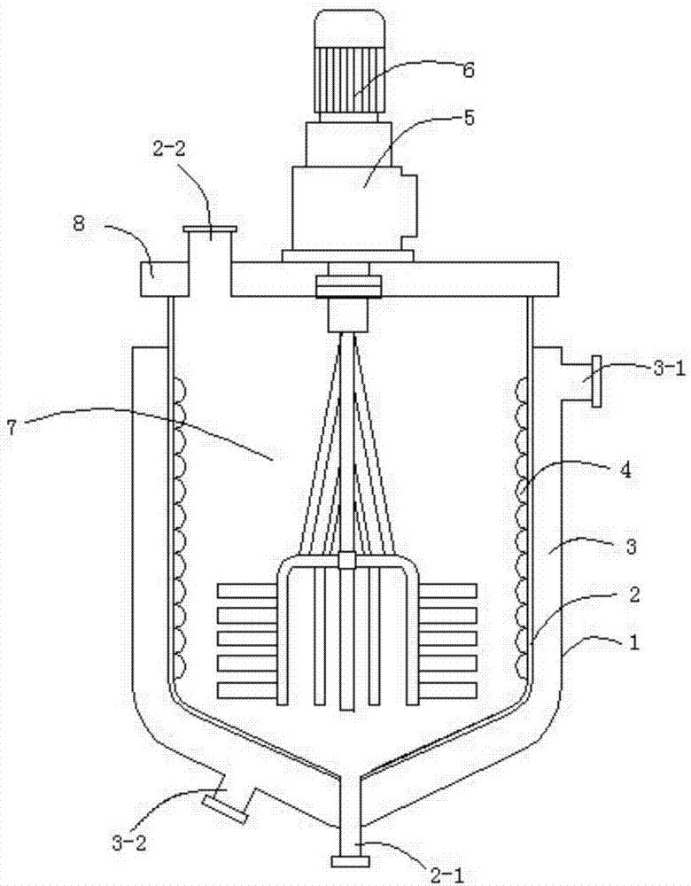 图8翅片板式换热器(三)夹套换热器:见图9结构:换热器的夹套装在容器的外部,夹套与器壁之间形成密闭的空间,为载热体或载冷体的通路。 优点:夹套式换热器主要应用于反应过程的加热或冷却。缺点:传热系数较低,传热面又受容器的限制,因此适用于传热量不太大的场合。为了提高其传热性能,可在容器内安装搅拌器,使器内液体作强制对流,为了弥补传热面的不足,还可在器内安装蛇管等