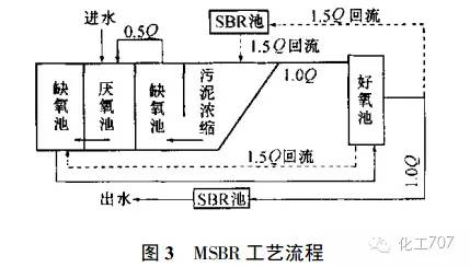 (3)MSBR 法:MSBR工艺是20世纪80,年代初期发展起来的污水处理工艺 ,经过不断改进和发展,目前最新的工艺是第三代工艺,其工作原理如图3所示。